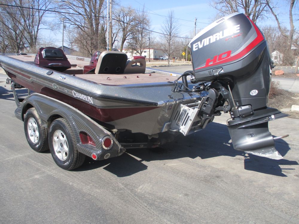 2016 Evinrude Etec 250 Model E250HGLABG being sold in running condition complete with controls, steering, jack plate etc. Also included with your purchase is the 2005 Champion 198 boat and Ranger Trailer. Notes: Engine has been run and is guaranteed to run at time of sale Engine scan shows 736 hours Compression 100-110 across the board Boat is damaged (underneath fiberglass damage) SOLD *AS-IS* -WI Title Trailer is damaged SOLD *AS-IS* - No Title **Hull is tacky and damaged -